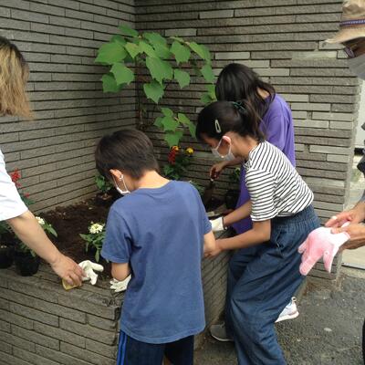 花壇やプランターに夏の花の苗を植える活動でしたが、植え方を教えていただきながら一緒に