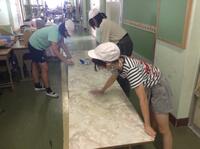 配膳台、下駄箱、椅子の裏まで・・・たっぷりと時間を使って、普段はなかなか手が回らないところまで丁寧に掃除をする子供たち。