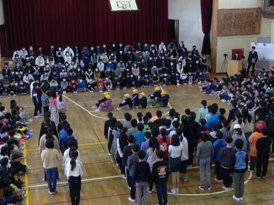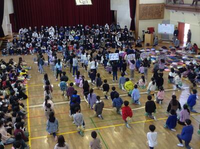 4年ぶりに全校児童が体育館に集まっての「6年生を送る会」!