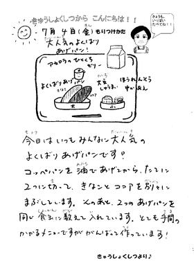7月4日の給食 投稿日時 : 07/04 新井小学校管理者 よくばり揚げパン 牛乳 大豆しゅうまい ほうれん草中華あえ アセロラのひとくちゼリー 人気のメニューでよく食べていました。大完食してくれたクラスがいくつもあったようです。 Tweet {{options.likeCount}} {{options.likeCount}} {{options.unlikeCount}} {{options.unlikeCount}} 0 コメント