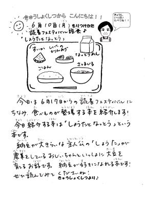 6月10日の給食(読書フェスティバル給食) 投稿日時 : 2024/06/11 新井小学校管理者 ご飯 牛乳 納豆あえ レバーのかりん揚げ さつま汁 すいか すいかと納豆が人気でした。今日は読書フェスティバル給食として、本の紹介もしました。 Tweet {{options.likeCount}} {{options.likeCount}} {{options.unlikeCount}} {{options.unlikeCount}} 0 コメント