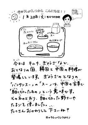 1月20日の給食 投稿日時 : 01/20 新井小学校管理者 キムチご飯 牛乳 小松菜ぎょうざ バンサンスー わかめスープ 花みかん 人気のキムチご飯、今日もたくさんお代わりしてくれました! Tweet {{options.likeCount}} {{options.likeCount}} {{options.unlikeCount}} {{options.unlikeCount}} 0 コメント