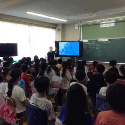 子どもたちは、ALTの先生の生きた英語を聞いて、目を輝かせていました!