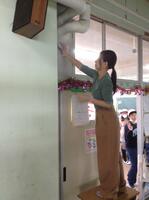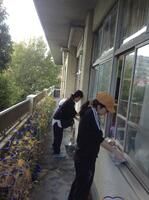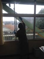 普段はなかなか手が届かない教室の窓掃除や棚やロッカーなどの高いところの埃掃除などを行っていただきました。