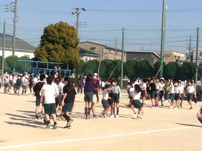 長縄が好きな子、得意な子もいればそうでない子もいる様子。困っている子やうまくできない子にやさしく声をかけたり回る縄の中に飛び込むタイミングを口伴奏で教えあったりと、期間中、校庭が大変賑やかでした。
