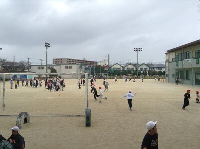 子どもたちは月曜の昼休みを楽しみにしています。今日も校庭は明るく元気な声が響き渡っていました。