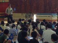 今回は5年生の4クラスの朝学習の時間に行いました。