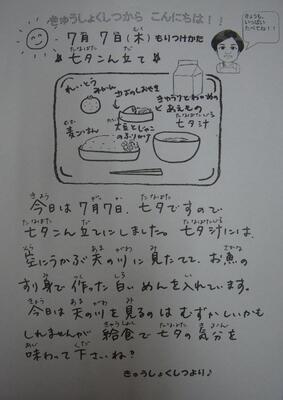 7月7日の給食(七夕こん立て)