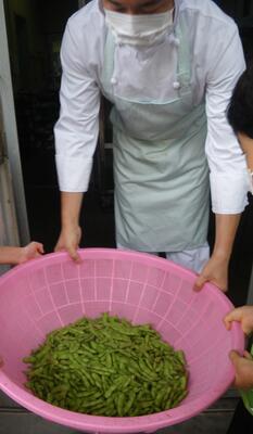 7月15日の給食(枝豆のさや取り)