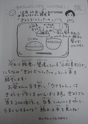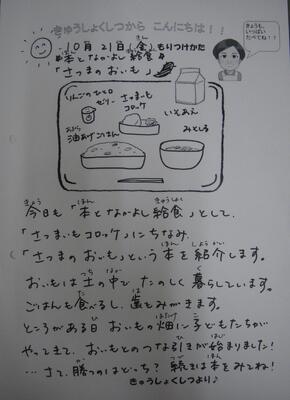今日も「お話給食」として「さつまのおいも」という本を紹介しました。