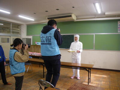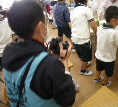 今日は広報いちかわの取材を受けました。給食をテーマとした記事を予定しているそうで、栄養教諭の古賀と、給食室の松田チーフ、1年生の子どもたちが取材を受けました。