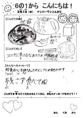 2月1日の給食(6年1組ナンバーワンこん立て)