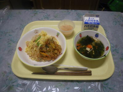 豚丼が大人気でした。ほとんど残っていなかったです。栄養のバランスを考えてお肉少なめ、ネギなどの野菜を多くしていますが、このような料理ですと野菜もしっかり食べてくれますね。