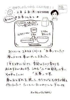 2月4日が立春でしたので、春らしい色合いの献立にしました。子どもたちはよく食べていました。