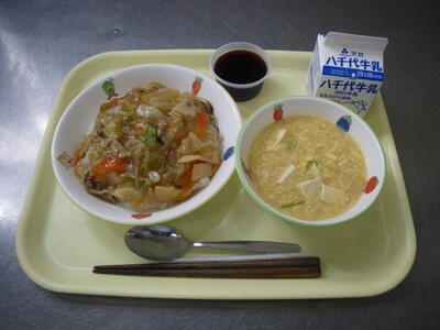 中華丼 牛乳 コーンスープ ぶどうゼリー