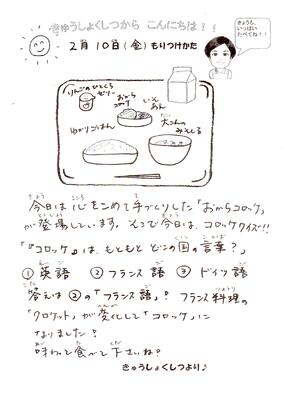 2月15日の給食(6の4 ナンバーワンこん立て)