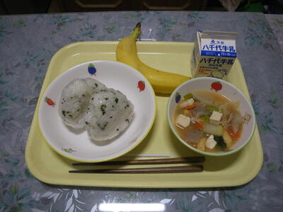 わかめご飯おにぎり 牛乳 豚汁 バナナ