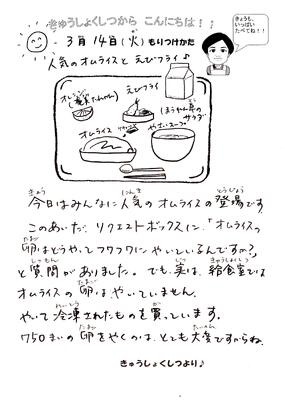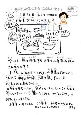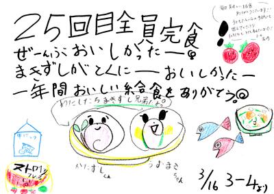 毎回全員完食をめざしていたクラスが、見事給食終了まで通算25回全員完食を達成して、すてきなお手紙をくれました。給食室からも、お礼のお手紙を贈りました。ダブルでうれしい、給食最終日となりました!!