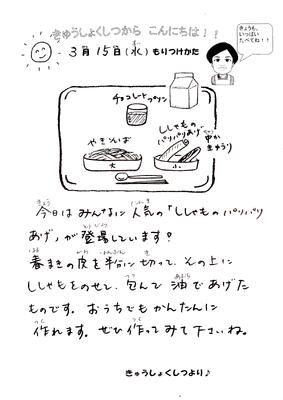 もうすぐ卒業する6年生からリクエストをいただいていた「切り干し大根の春巻き」、煮ものだと子どもにはちょっと食べづらい切り干し大根も、春巻きの具にすると食べやすいようです。リクエストしてくれた本人も、うれしそうに食べていました。