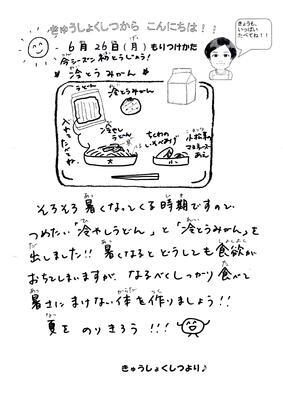 今日も読書フェスティバル給食です。おたよりでは「サラダでげんき」という本を紹介しましたが、給食時間の放送では図書委員の人が「バムとケロのにちようび」という本を読んで紹介してくれました。