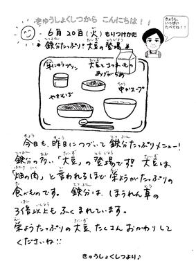 食育の日にちなみ、鉄分たっぷりのレバーを出しました。レバーは、ほとんど残っていないクラスが多かったです。