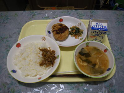 ごはん 牛乳 エコふりかけ おからコロッケ ごま和え 大根のみそ汁