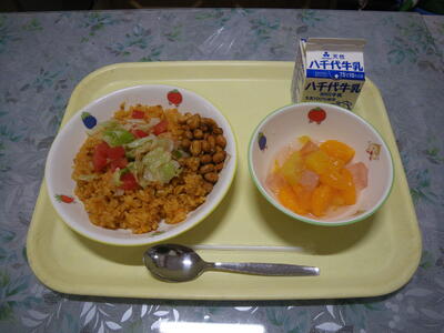 タコライス 牛乳 カレーフライビーンズ フルーツポンチ