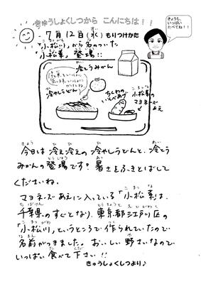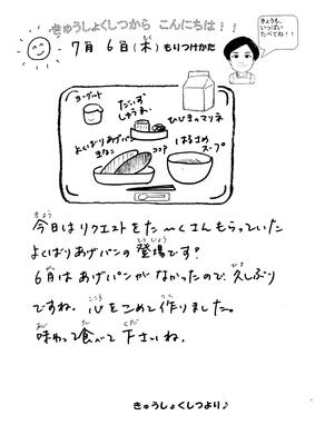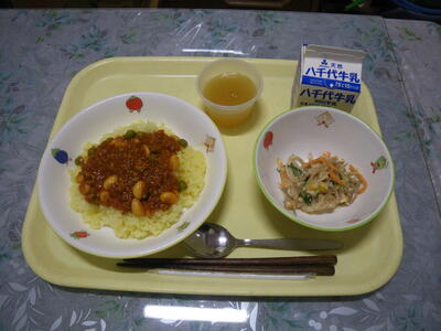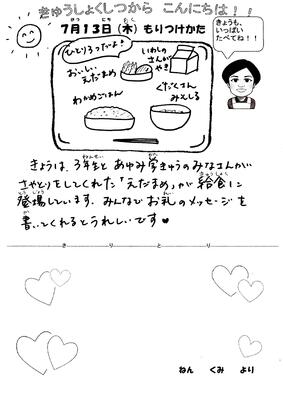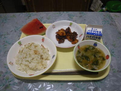 7月13日の給食(3年生とあゆみ学級の子どもたちがさや取りしてくれた枝豆、登場!)