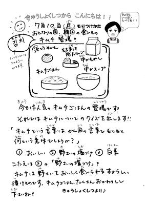 暑い日で冷凍みかんがうれしかったです。キムチご飯をお代わりしてくれた子がたくさんいました。