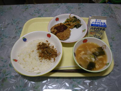 ごはん 牛乳 エコふりかけ おからコロッケ ごま和え 大根のみそ汁