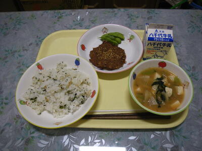 わかめご飯 牛乳 いわしのさんが焼き 枝豆 具だくさんみそ汁