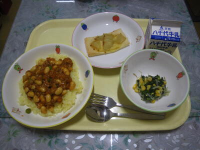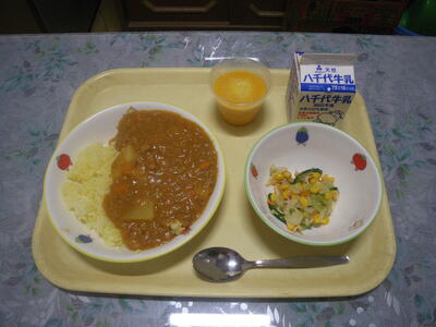 今日は新井っ子秋祭りのため、配膳しやすく食べやすい献立にしました。米粉のキーマカレーは、小麦アレルギーの児童もみんなと同じものを食べられるように工夫したメニューです。