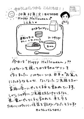 ハロウィーンにちなみ、かぼちゃのプリンを出しました。豆乳とかぼちゃペーストを使ったプリンです。