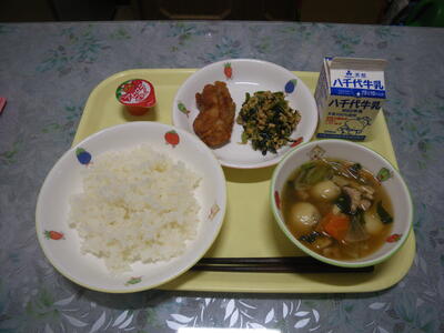 ごはん 牛乳 鶏のから揚げ 納豆あえ 五目すいとん アセロラのひとくちゼリー