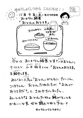 今日のお話給食は、一口おでんにちなんで「おでんのおうさま」という本を紹介ました。