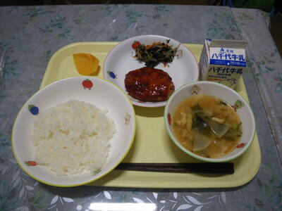ごはん 牛乳 とうふハンバーグ 磯和え 大根のみそ汁 柿
