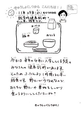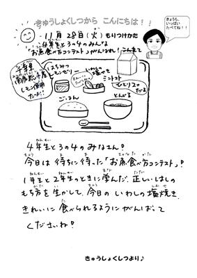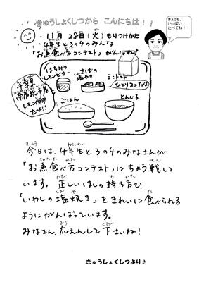 11月28日の給食(4年生と3の4 お魚食べ方コンテスト)