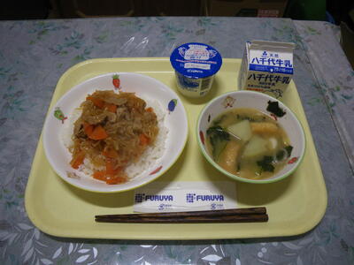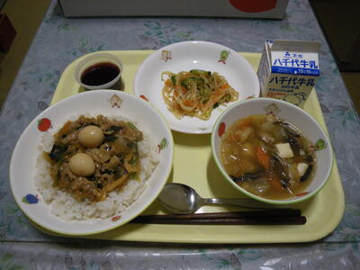 豚肉とごぼうの炊き合わせ、おかわりしてくれた子がたくさんいました。納豆あえも人気でした。