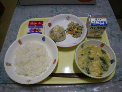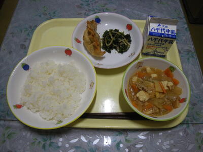 ご飯 牛乳 ぎょうざ ほうれん草中華あえ 家常豆腐