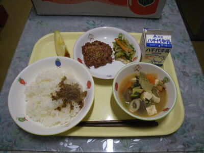 ご飯 牛乳 ふりかけ 大豆しゅうまい ごぼうサラダ コーンスープ