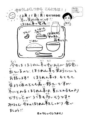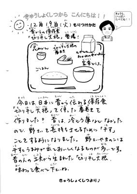 来年の給食は1月10日から始まります。来年も給食室一同、心をひとつにがんばります!