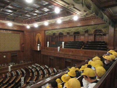 「国会議事堂」では、実際に国会が行われる本会議場へ行くと、子どもたちからは「見たことある!」と、感動の声が聞こえてきました。