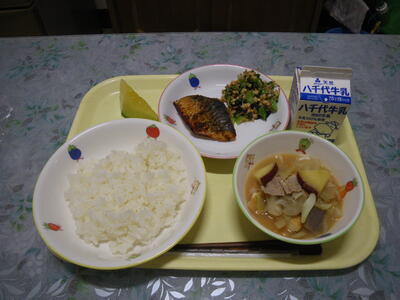 ごはん 牛乳 納豆あえ さばのカレー焼き さつま汁 メロン
