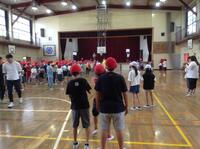 代表委員会から新井小学校の〇✕クイズを行うこと、ペアで回答を考えて、〇か✕の場所に移動することなどの説明を聞いた後、さっそく始まりました。