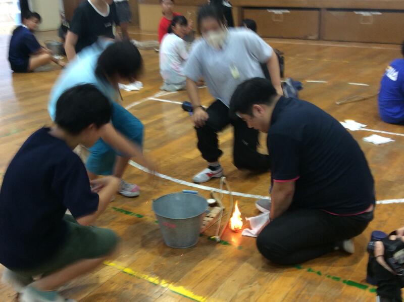 今回は消防署の方にも来ていただきました。火災の際、煙は1秒間に水平に1m、上に3m移動するそうです。