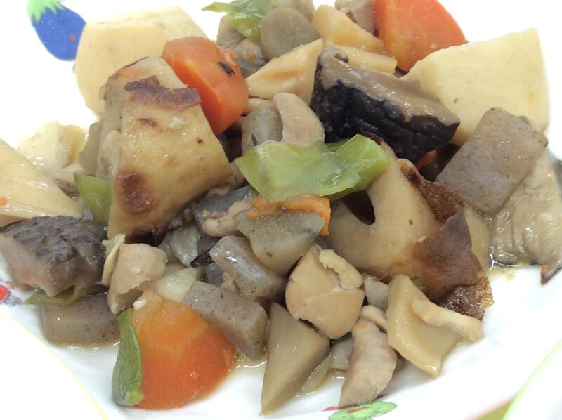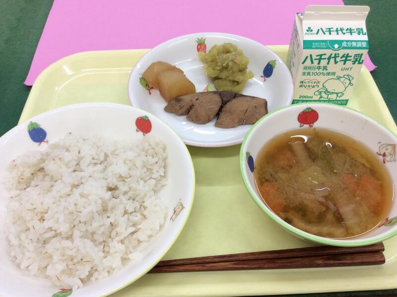 あずきご飯、いり鶏煮、けんちん汁、牛乳 です!
