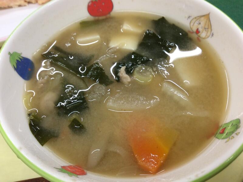 ごはん、ますの西京焼き、豚汁、みかん です!