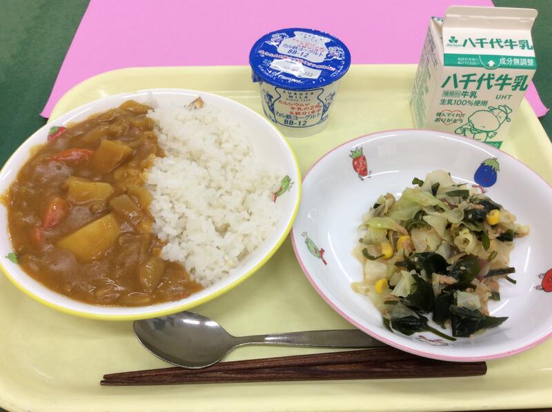 ポークカレーライス、海藻サラダ、ヨーグルト、牛乳 です!