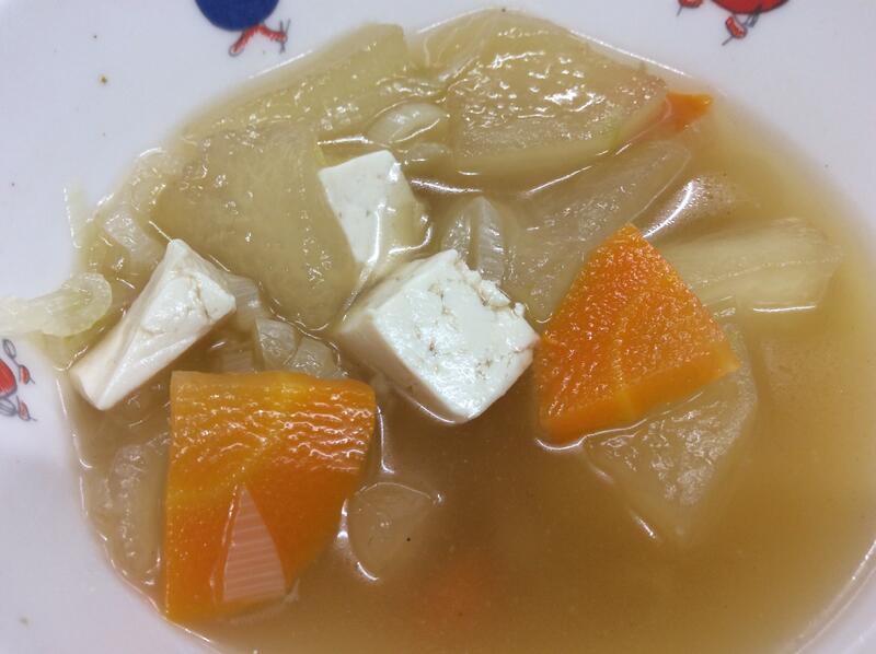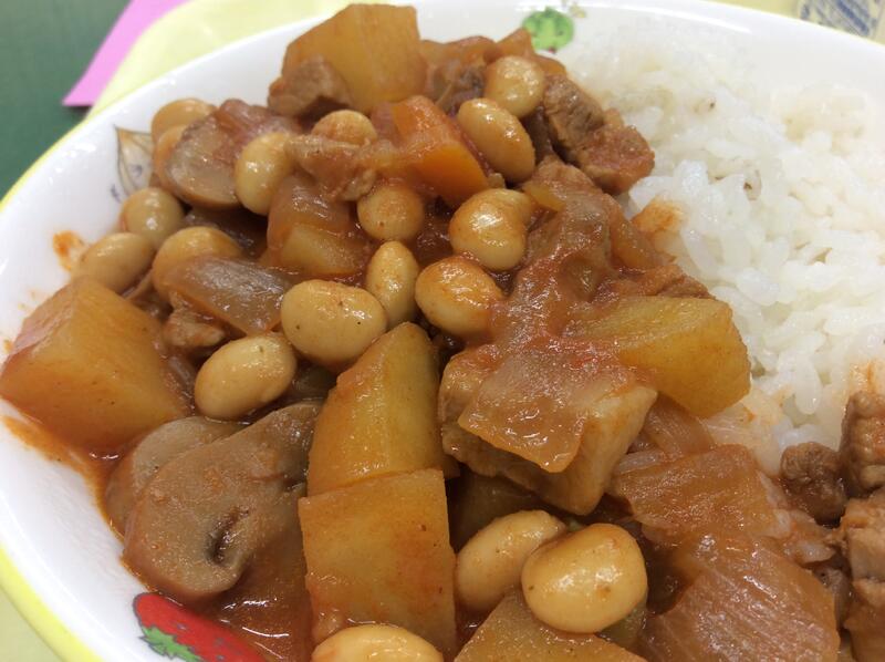 ドライカレーミートソース、ポトフ風お団子スープ、牛乳 です!