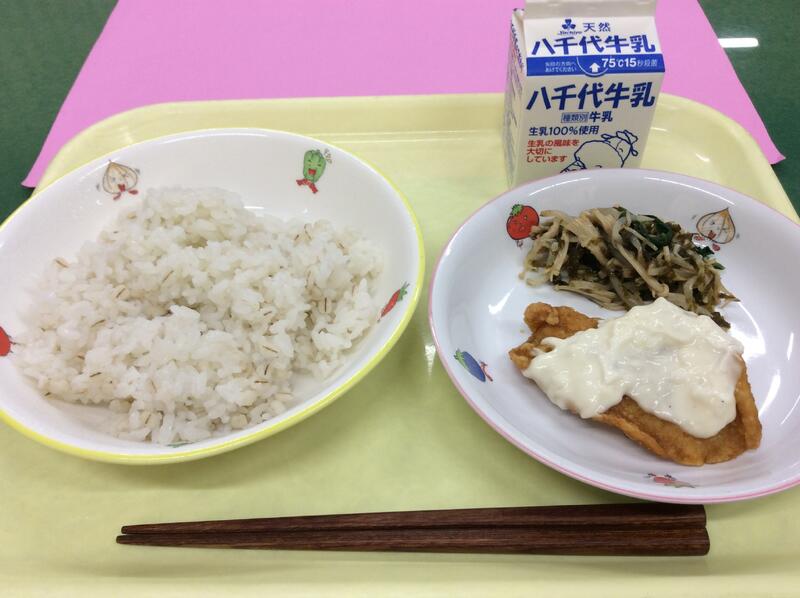 ごはん、チキン南蛮、ほうれん草の磯あえ、牛乳 です!